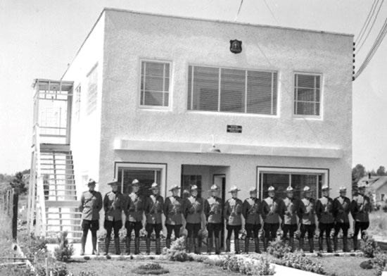 “The RCMP first began policing Cloverdale in May of 1951, when eighteen members left the RCMP Headquarters in Vancouver to take up their new post. At that time, the Detachment was led by Corporal Bill Turner, and 17 RCMP Constables. The first RCMP members worked out of Surrey City Hall at 5900 Main Street in Cloverdale – known today as 177b Street, Surrey – laying the foundation for policing in what would become one of Surrey’s most historic and vibrant communities.