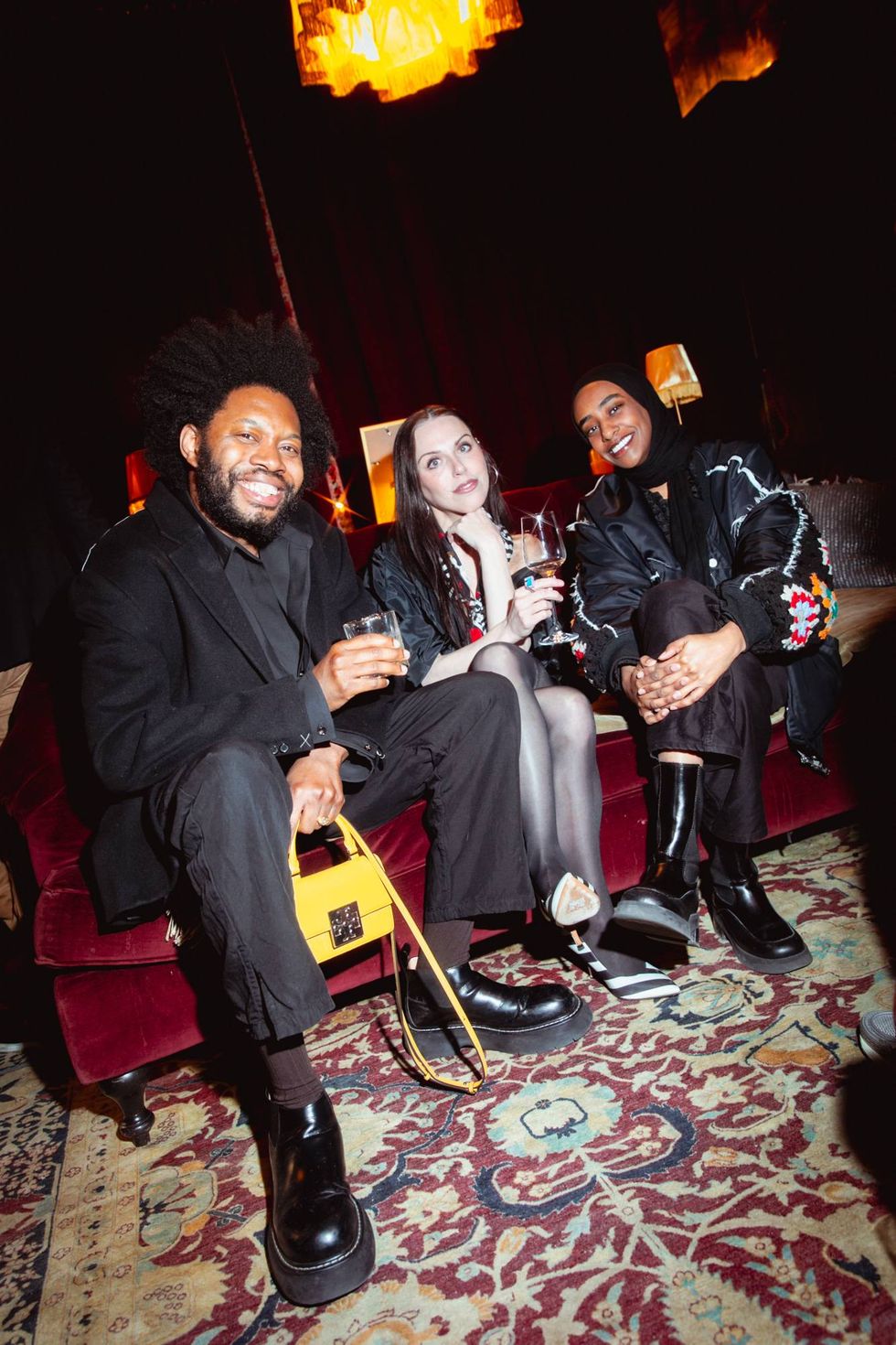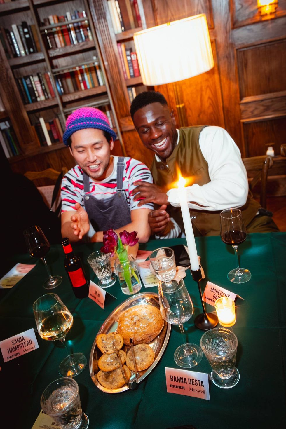 The night began with a cocktail hour, from 5 PM to 6 PM, with guests gathering around the fireplace at the Tribeca social club. Recognizable faces included playwright and filmmaker Jeremy O. Harris, photographer wunderkind Tyler Mitchell, Olivia Washington and Danny Kasirye. Cover writer Yohana Desta was also seen chatting about the crowd, which included friends Sarah Hagi and Natalie Walker, famed writer and actress about town respectively, alongside Straightio Lab host George Civeris. (The PAPER crew was also in attendance, of course.)