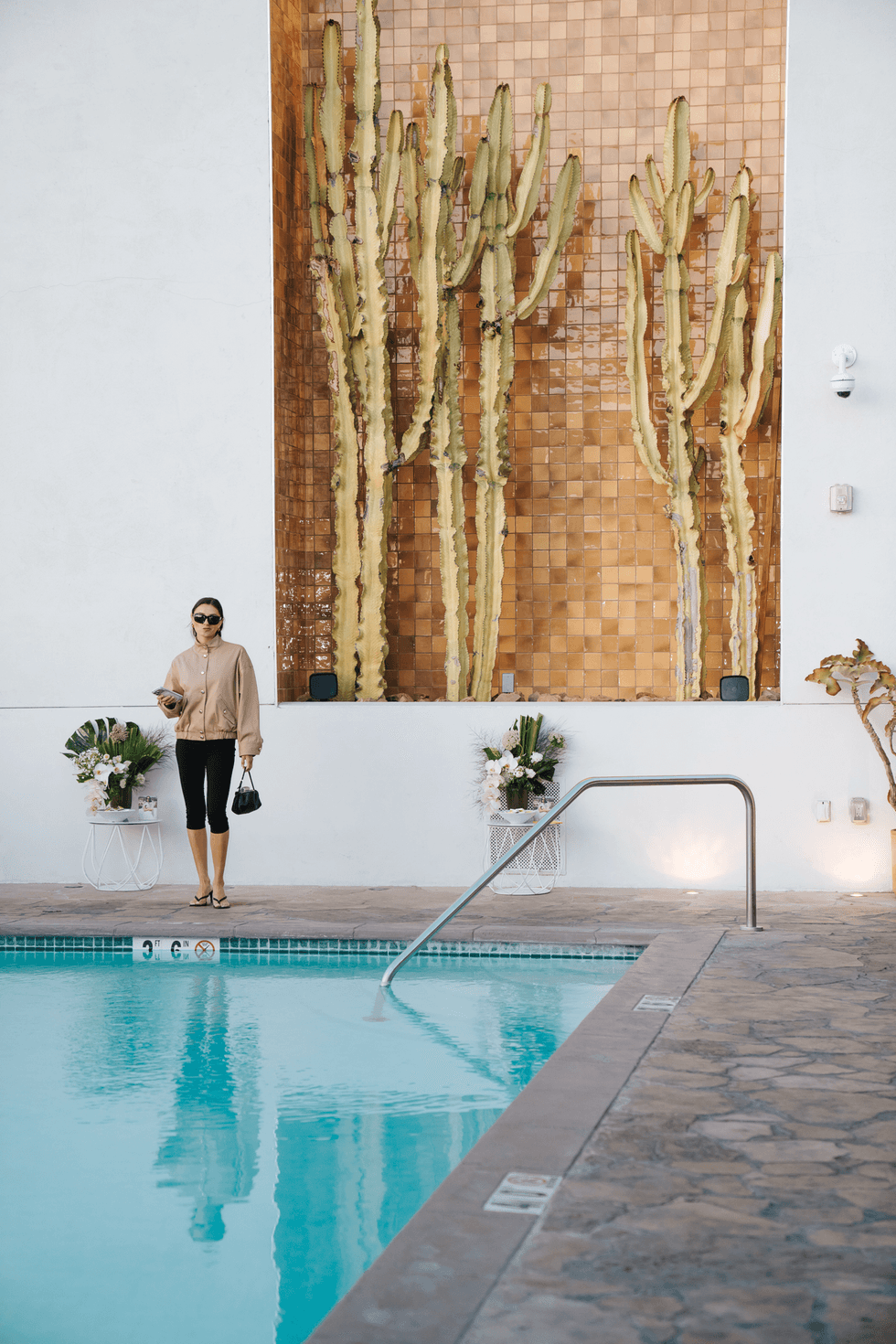 This past Thursday, PAPER and Maje transformed the pool at Silverlake Pool and Inn into La Soirée. It was a springtime celebration that brought French elegance to the heart of Los Angeles. The evening was hosted by actress, Luna Blaise, who was wearing the all blue tailored set.