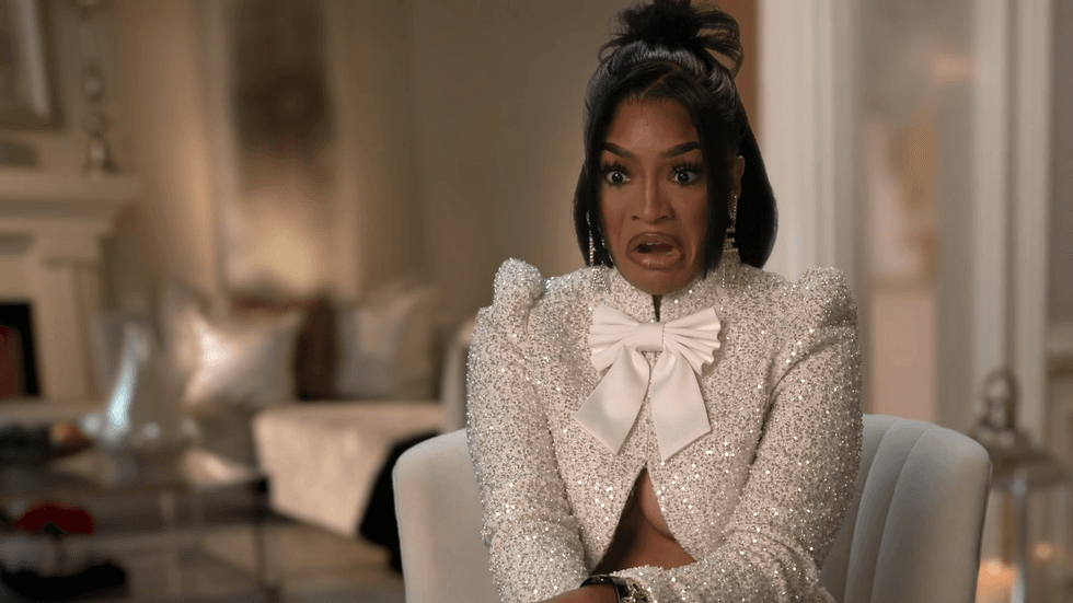 If there's one thing Phaedra Parks is going to do, besides laugh at her own jokes, it's wear champagne bustiers with her tits out. I'm not complaining! The lady is rich and dresses like she wants everyone to know. That includes wearing her Chanel-adjacent Basque set, which is far too stuffy for the booth. All I can think about whenever she dons a jacket is that Instagram story about Lily Rose Depp: "trench coat buttoned to the TOP."
