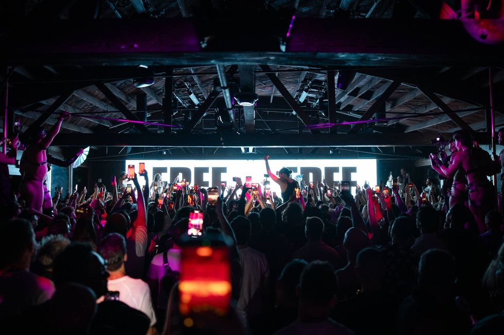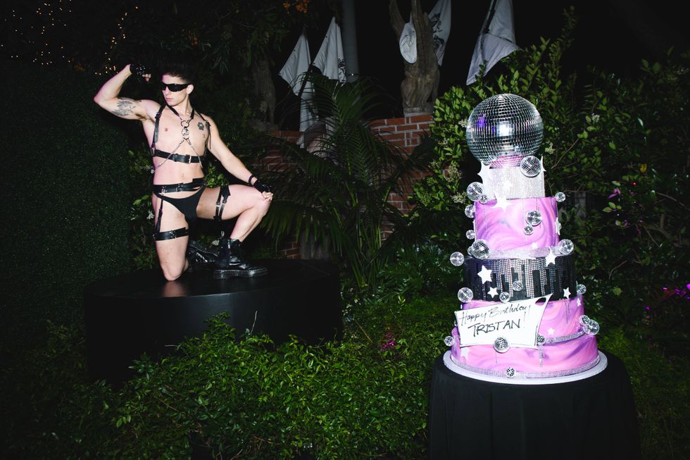Even this early in the night, the bar — mostly an outdoor space, if you’ve never been — is buzzing. A photo op recreating the primary Confessions II cover greets me on one side; on the other, Willam is conducting social interviews. The friends I’m meeting up with aren’t here yet, so I do a lap to try and get a feel for the space and see if I can spot any early arrivers. Harry Daniels is my one sighting during this attempt. This also doubles as a reorientation to the space (all love to those who participate, WeHo is generally not my truth) and makes me feel at least a little productive while I search for the bathroom.