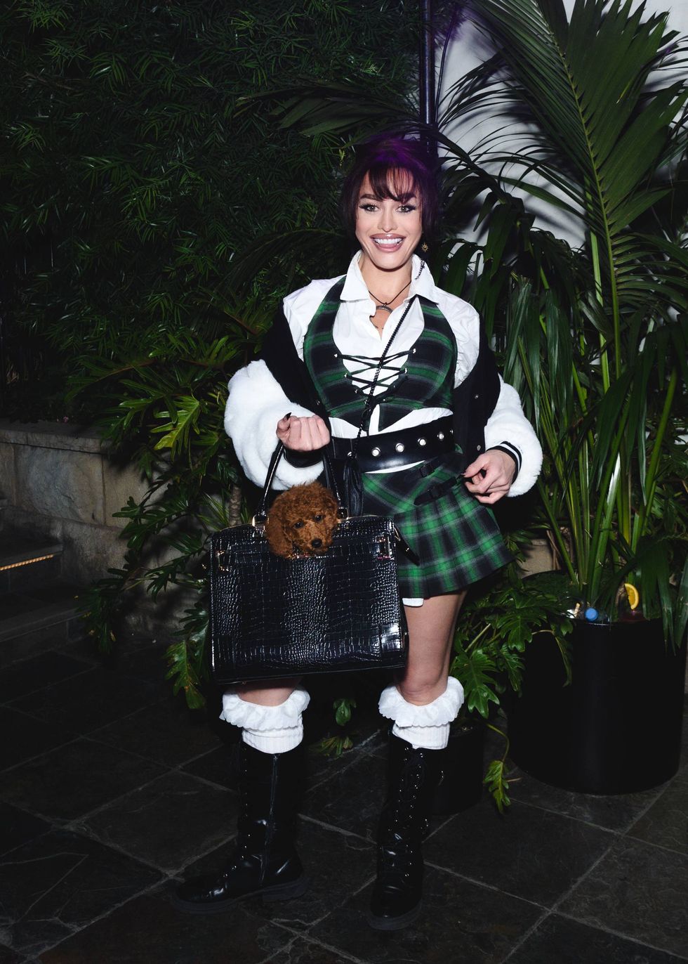 My friend elbows me, panicked — “ADDISON!!!!” — and lo and behold, Addison Rae is up there dancing right next to Symone, in a cheeky little eye mask recalling The Girlie Show.