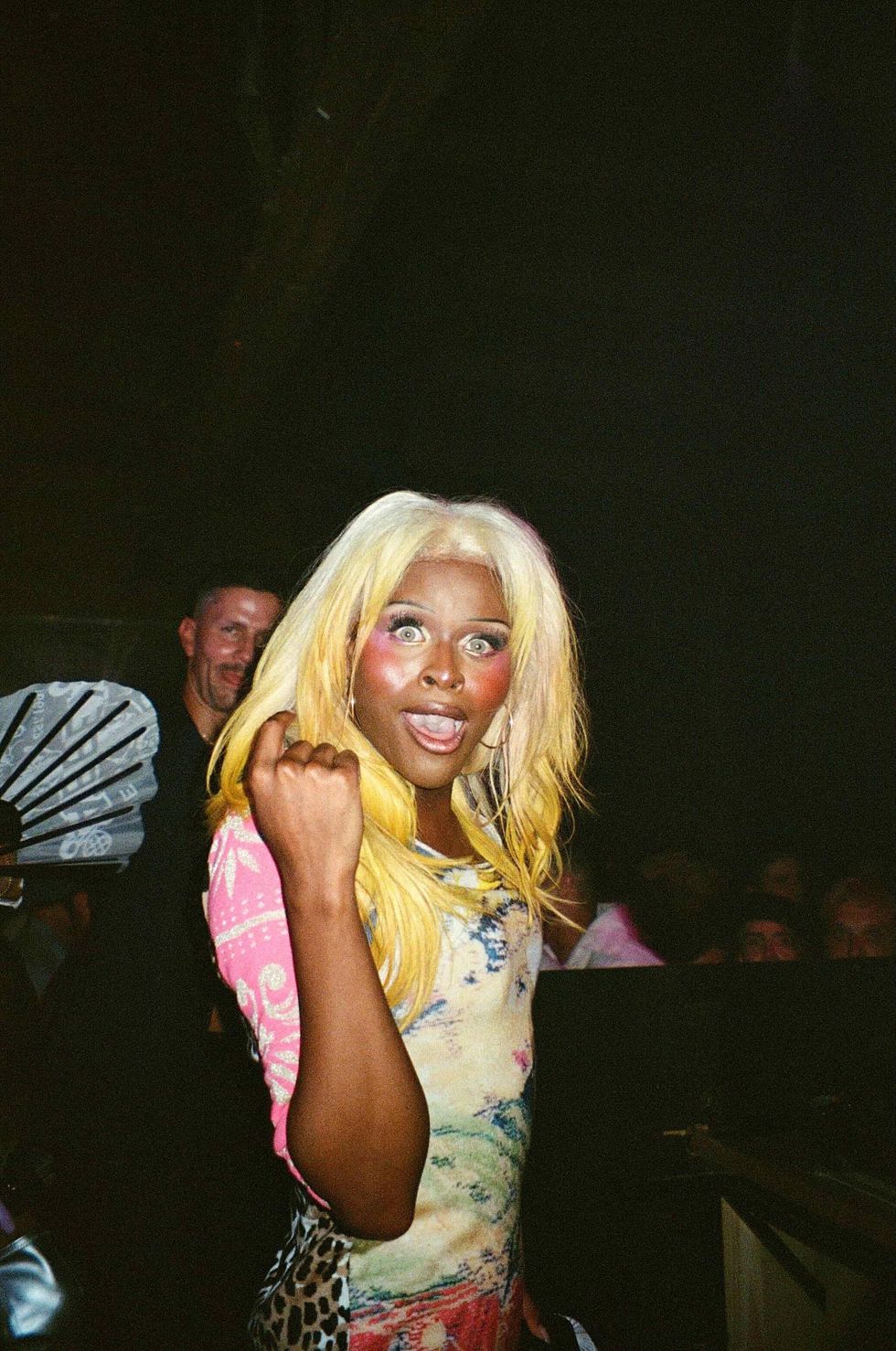 Mez Monty is DJing at this point — mostly house beats, setting the vibe for what is to come. On the dance floor, I run into a friend, also a journalist; we laugh about that worst-kept secret which the trades all went on to dub a “surprise” appearance.
