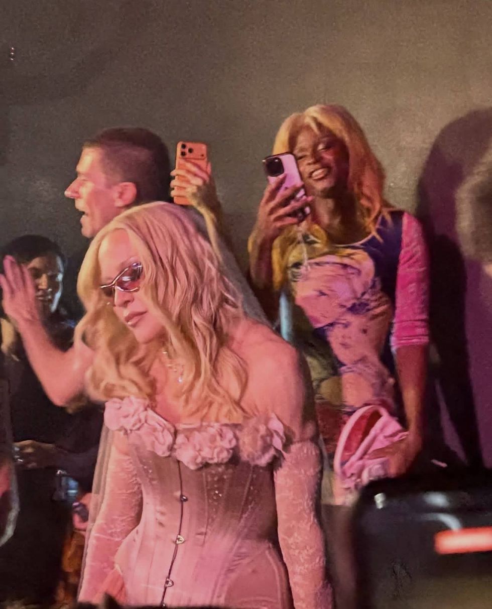 We head toward VIP, where there’s a mass exodus because M’s security has tightened things up. Kelly Mantle passes on the way. No one gets in. I probably could have made it into VIP if I actually tried, but then I run into Seth Rogen and Evan Goldberg’s assistants, which is briefly baffling until I remember her plot-line on The Studio’s forthcoming season. Both straight guys to my knowledge, they are effusive about the Queen.