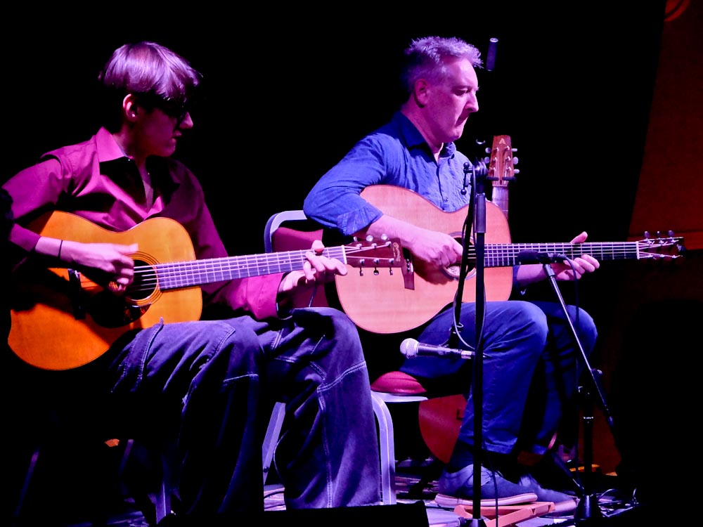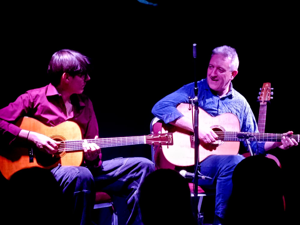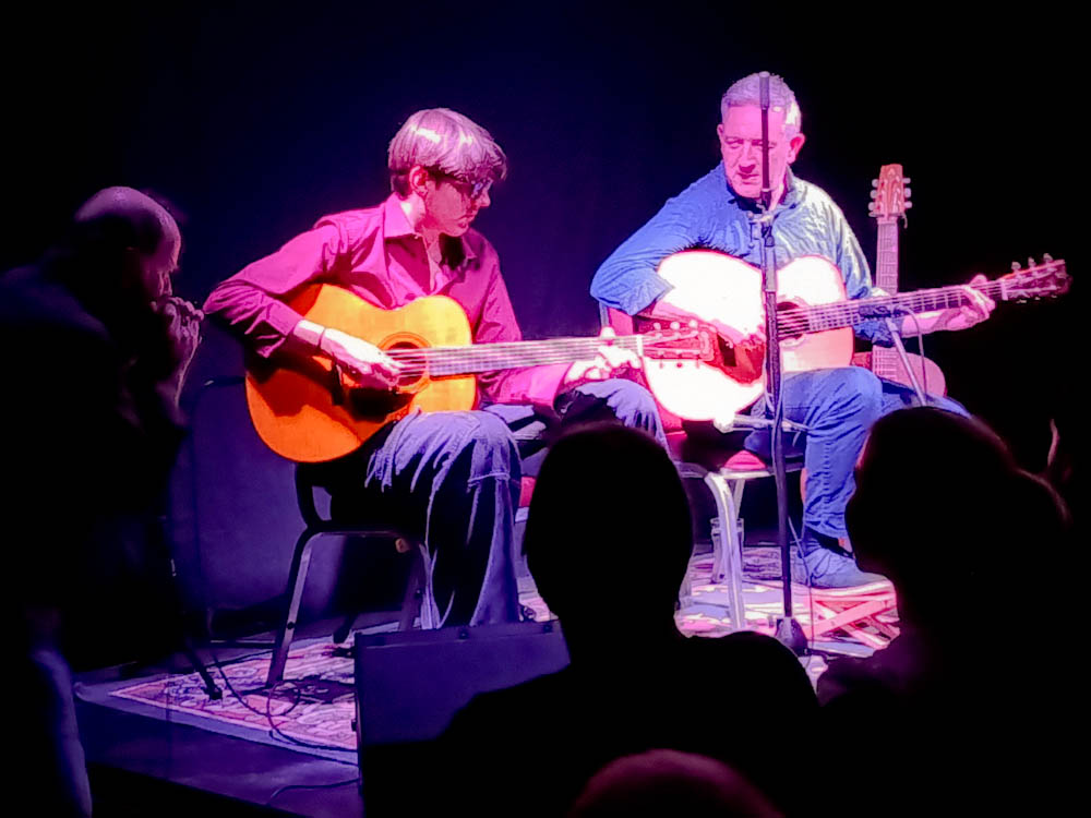 The second half starts with the Mountains of Illinois, a Chet Atkins tune, before another new piece, Maybe I Will (Maybe I Won’t), on the baritone. Then we move into familiar territory with Renbourn’s The Young Man Who Couldn’t Hoe Corn. Now he’s joined on stage by the young Italian guitarist Fabrizio Bianco for duets on Red’s Favourite and Lady Nothynges’s New Toye Puffe.