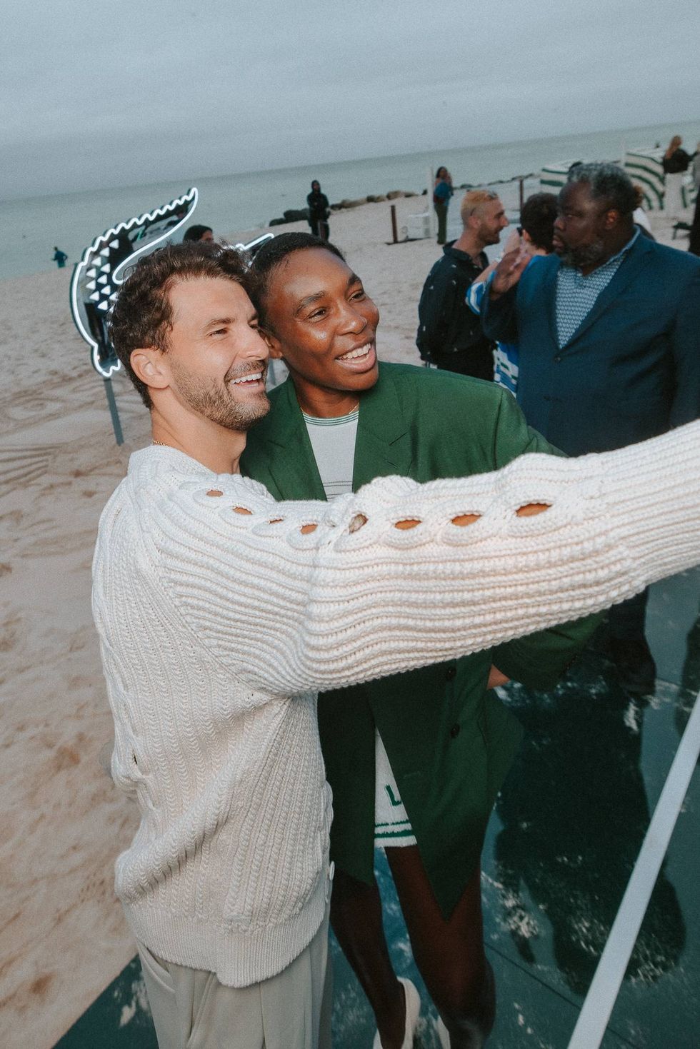 The launch pulled Lacoste brand ambassadors Venus Williams, Daniil Medvedev, Grigor Dimitrov, Arthur Fils, Ugo Humbert, Arthur Cazau, and Eva Lys, plus Ollie Muhl and Caleb McLaughlin, who enjoyed beach party vibes with friendly tennis on the sand, light bites, and a signature cocktail.