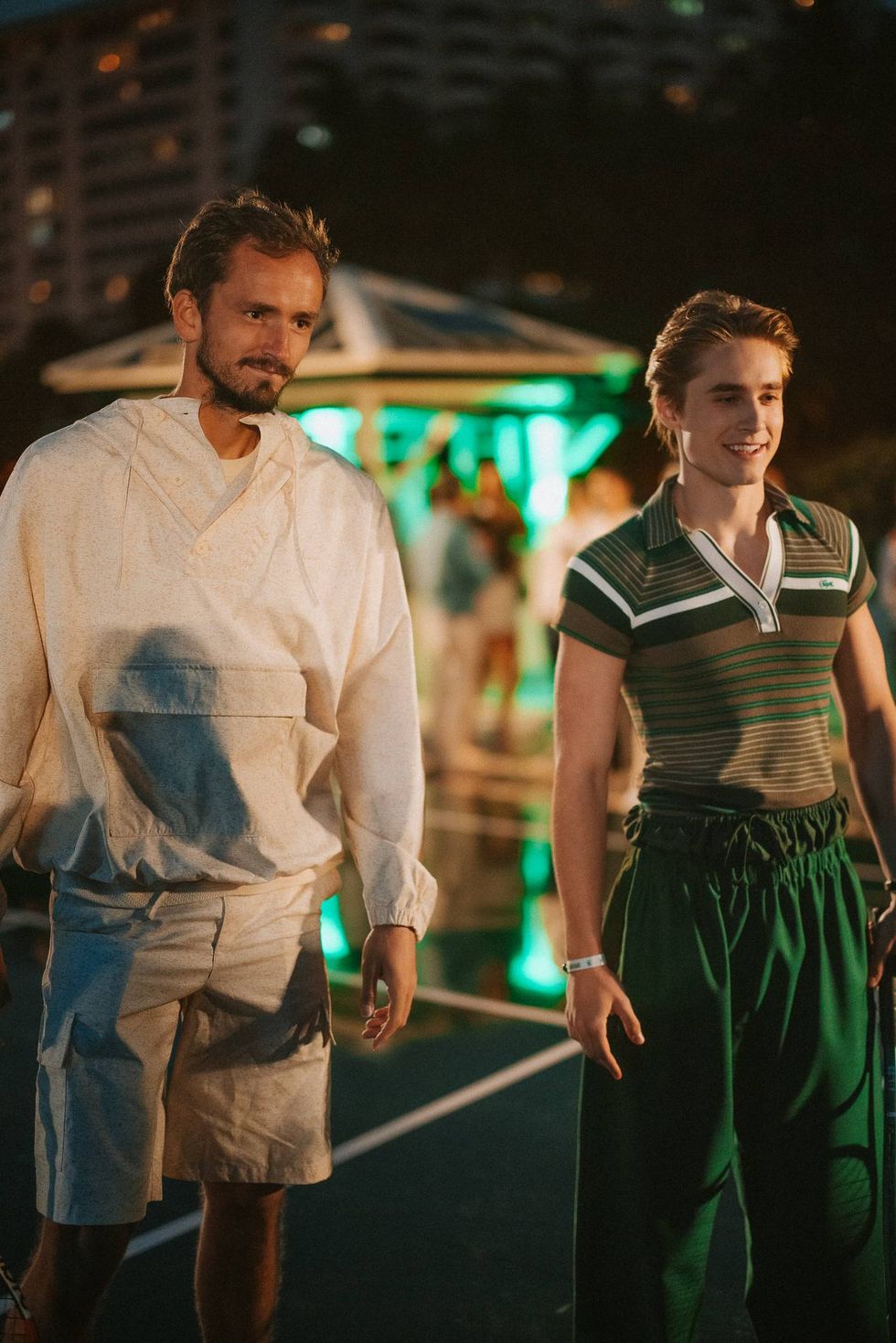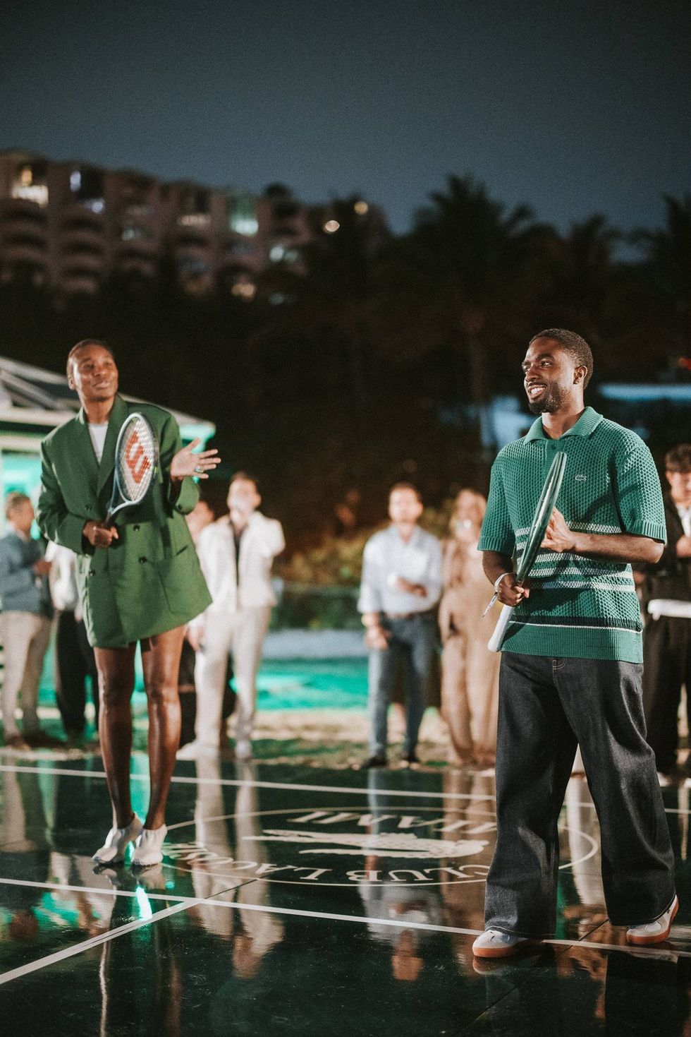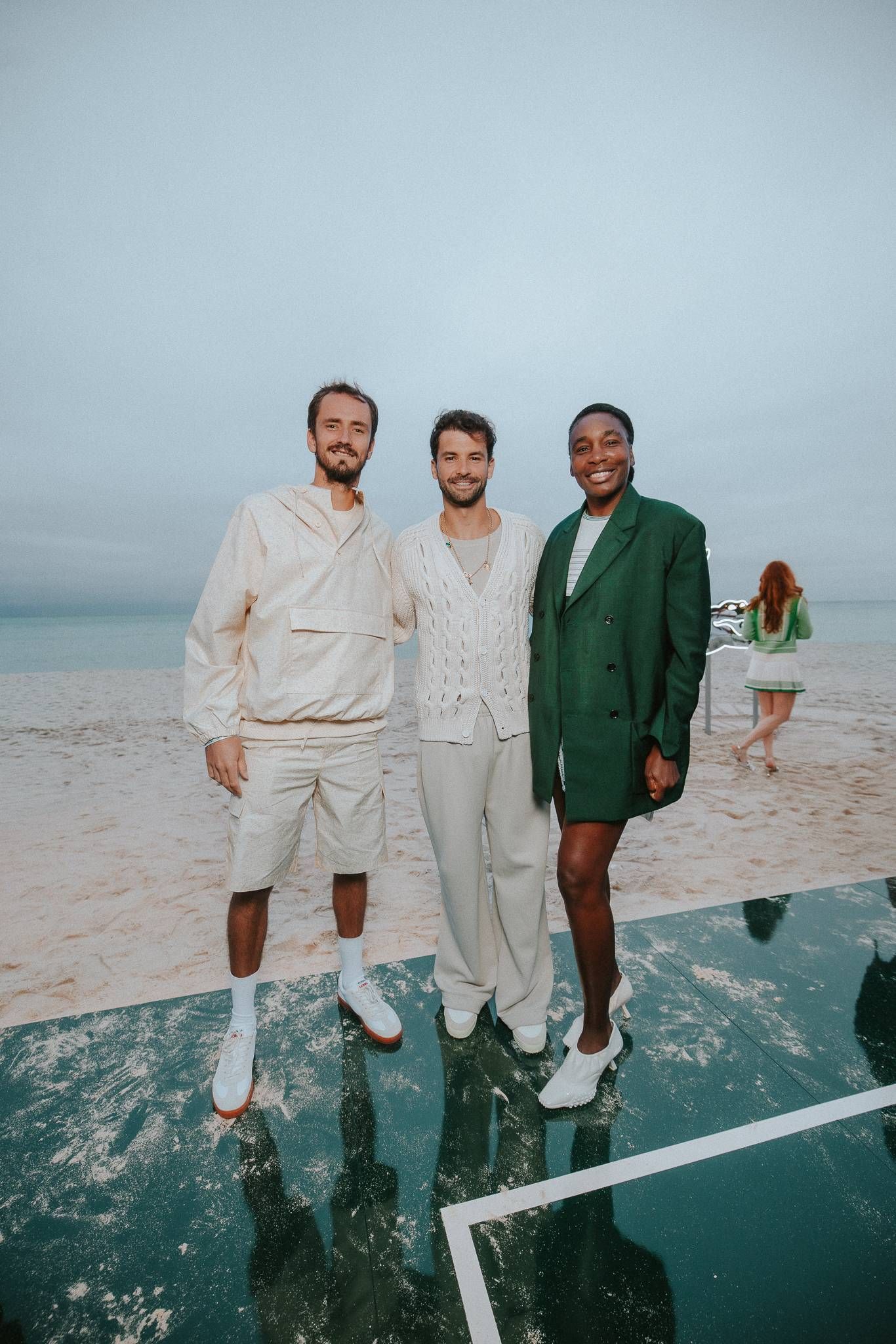 On Wednesday night, CLUB LACOSTE Miami landed at the Miami Open at The EDITION to kick off their two-week activation.Club Lacoste brought tennis to Miami Beach with a full beach takeover. A dark-green tennis court served as the centerpiece, framed by white sand and the Atlantic. Club Lacoste beach huts lined the court alongside classic games for guests to enjoy.The launch pulled Lacoste brand ambassadors Venus Williams, Daniil Medvedev, Grigor Dimitrov, Arthur Fils, Ugo Humbert, Arthur Cazau, and Eva Lys, plus Ollie Muhl and Caleb McLaughlin, who enjoyed beach party vibes with friendly tennis on the sand, light bites, and a signature cocktail.With two weeks of tennis ahead, this was the perfect way for Lacoste to prepare us all for the Miami Open.For more on our favorite Lacoste Ambassadors and their Miami Open approach, plus their take on how to serve real Miami style, read our exclusive interviews with our PAPER Tennis correspondent Olivia Elliott below.VENUS WILLAMSIf you had to pick one person's serve and one person's wardrobe, what would it be?Okay. Serve. Pete Sampras, Jesus Christ. I love Pete. It never ends, like his game's in insane. Who[‘s closet] would I wear? Renee Lacoste. Can you imagine? A woman wearing his clothes? It would be amazing. The slay, the slacks, it would be amazing.As a notable champion in your life and many, many times over of the Miami Open, what is your favorite match here?Oh my gosh. I think the first time I won I was like 17. I was a baby. It was my biggest title at the time. But I have to say, once I won a final where I faced like seven match points. So that was insane. So just in general, anything that happened here, especially that I got to win, that was fun.DANIIL MEDVEDEVIf you had a player that you could choose that has the fashion that you love the most, who would it be?I know that everyone, everyone will pick Grigor [Dimitrov, the Lacoste Ambassador]. That's why I'm like I want to be a bit different and maybe try to choose someone else. Even if Grigor is super super cool and super good about fashion, let me go with Arthur Fils.What is your favorite thing about the Miami Open?I would say my favorite thing about the Miami Open for me is Miami as a city. It's super cool. I mean, we as tennis players, we don't have much time to visit the city itself. We just go to the restaurant and stuff like this and there's a bunch in Miami. If you have an evening match, you can come in the morning to the beach and enjoy yourself. Maybe go for a morning run. Yeah, Miami is cool as a city.What is the most Miami thing you've done since you've been here? Because I came yesterday, I didn't do absolutely anything… I think there are two ways to see it: Either a party, which we don't do too much as tennis players. Yes, we can sometimes, but not too much. Or a beach run and I think a run on the beach. David Guetta had this song where he has a clip, that was the time I watched video clips for music, and in it he's running in Miami Beach. So, so cool. All right. What is your preferred match? Daytime or night time?Nighttime. because I'm not someone who gets too nervous before matches. Actually, even if I get nervous, it's more like 1 hour before the match. So, if it's in the morning, I'm not a morning person. When I wake up, I'm already a bit kind of nervous. The matches, am I on time? Did I do everything right? Did I prepare right? When I play at night, I spend a great morning doing things I love and then I get to the courts whenever I want, kind of chill, easy.EVA LYSWhat is your favorite thing about the Miami Open?he people. The people are fun. You always have a good time, doesn't matter where you go, on site, people bring the good vibes in. And I love the Hard Rock Stadium. I feel like it's a different environment. You know, I like it because tennis usually stays the same. The court stays the same. So when the environment is actually different, it’s fun, I do enjoy being there. And obviously the weather. I know we don't have it today, but I do like the little sunshine. Give me a rundown of your outfit. What is the inspiration? It looks absolutely stunning on you. I think the biggest it-piece is the bag, inspired by a tennis skirt, for tennis use only, so I need to bring a little tennis flare to a little party. A very sandy look. Reminds me of Roland Garros which I'm going to be playing soon…A little cheeky, I like an oversize blazer, everything is Lacoste, down to the jewelry… It looks great. It feels great. Head to toe. All Lacoste.Who do you think is the most fashionable, that you think “Wow. I love that style.”That's a good one. I feel like Dimitrov is doing a good job. He's always stylish, his outfit today is also great, Lacoste.GRIGOR DIMITROVExplain your look head to toe. I want to hear it. Why did you choose this look today? You know, my tendencies everywhere in Miami is to bring that sort of the Miami Vice vibe. So, last year I had a white, very like white, sort of suit, and I wante